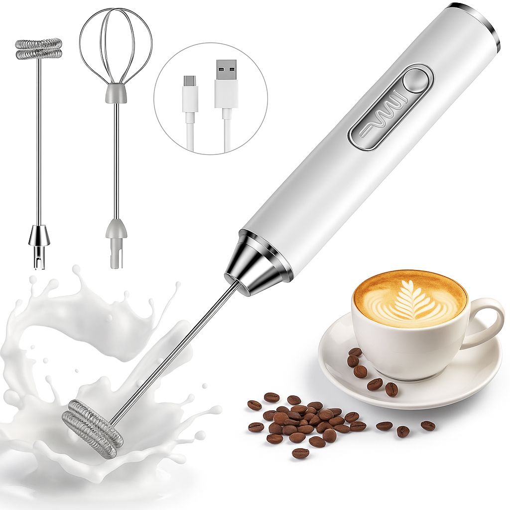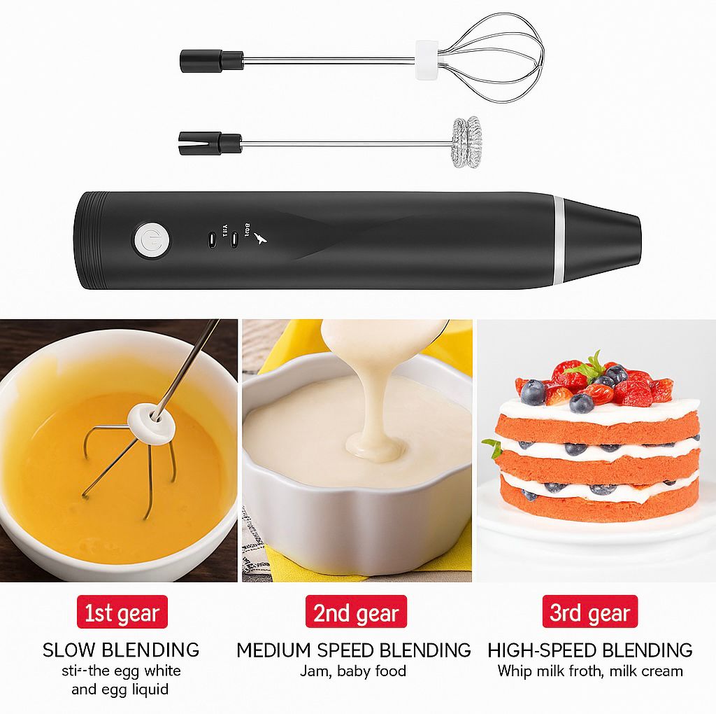 🔄 Versatile Attachments: Comes with interchangeable heads for frothing, whisking, or mixing 🍰🥚.